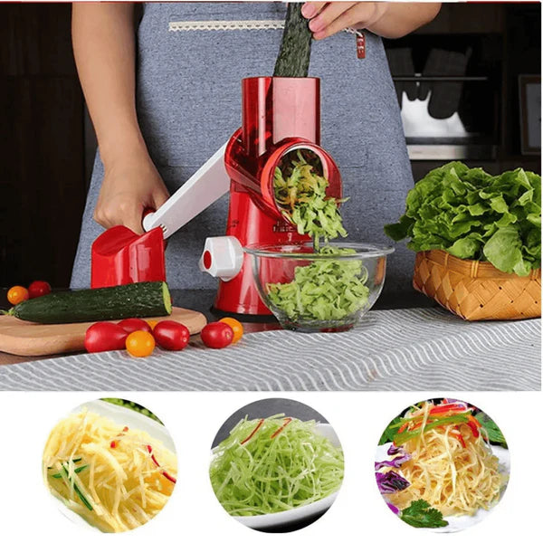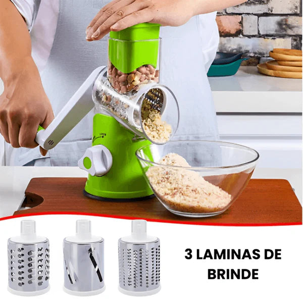 Equipado com três lâminas intercambiáveis - ralar, fatiar e triturar -, este ralador oferece versatilidade para atender às suas diversas necessidades na preparação de alimentos.